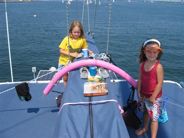The kids are running around the boat, busily playing