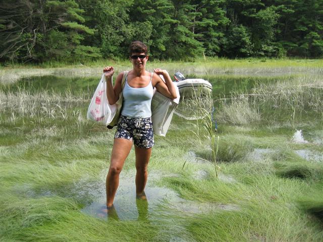 to the boat in ankle deep water where there had been