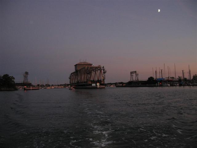 from the Mystic River Railroad Bridge in the pitch