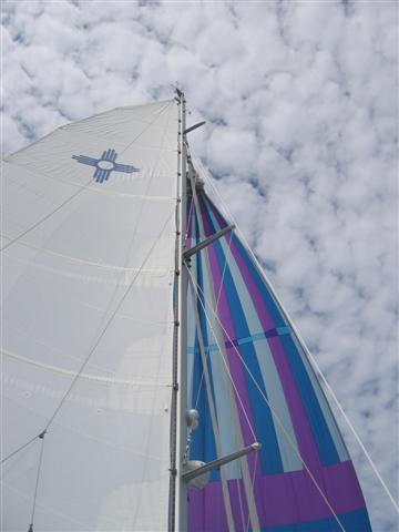hoisted the big colorful, downwind sail around 11am this