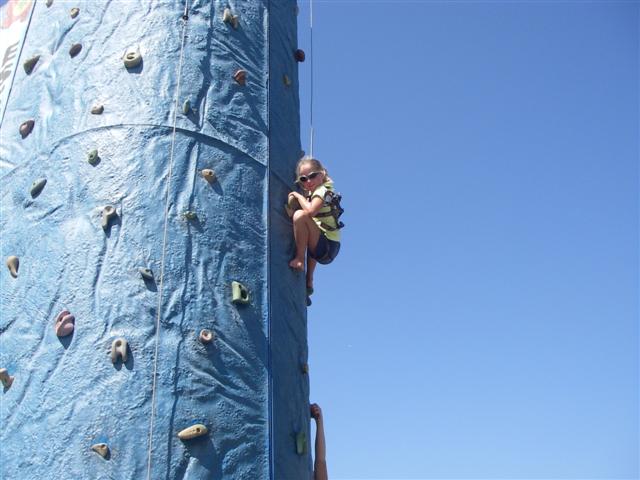 Cassie made it to the top of the rock climbing wall.