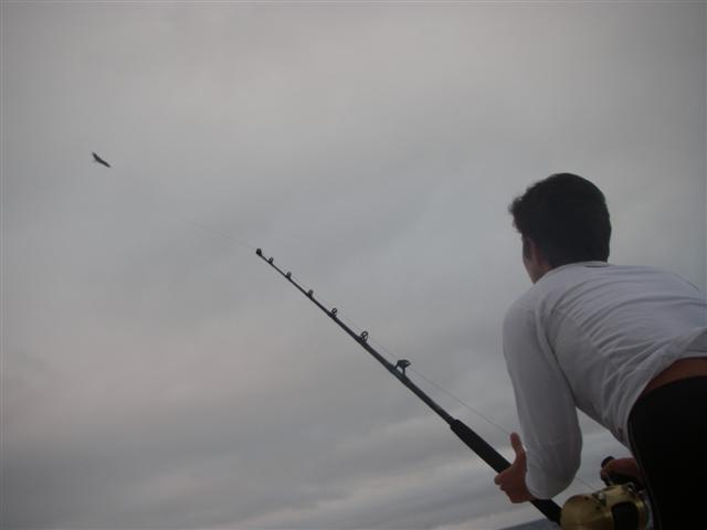 dinner on passage to see my fishing line heading straight up