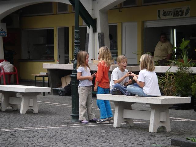 The girls playing in the market square in Horta.