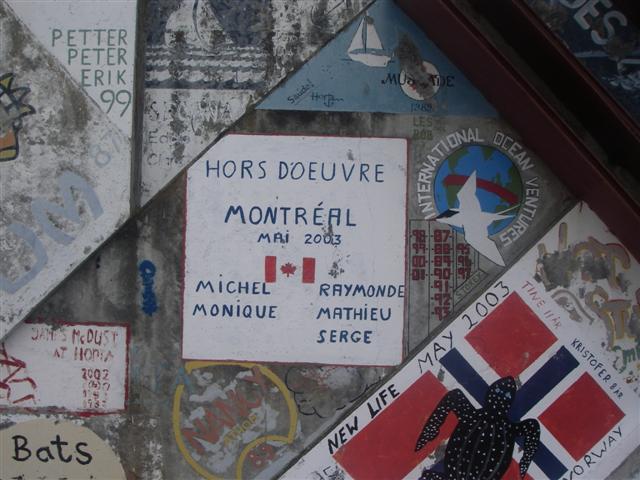 Blue) in the marina in Horta.