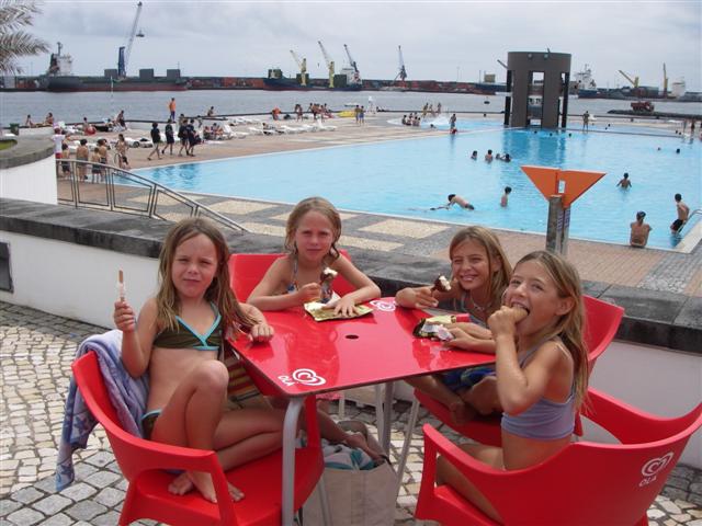 the marina in Ponta Delgada, Sao Miguel. Kids under 15 are