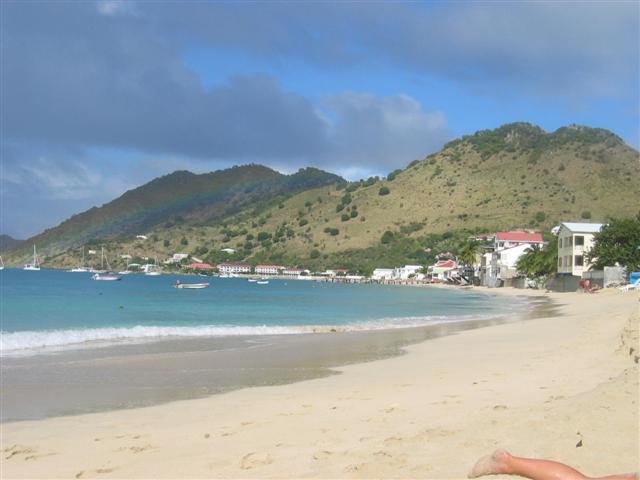 The beach and a rainbow in Grand Case, St. Martin