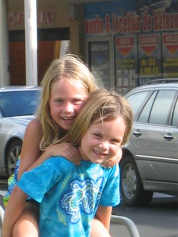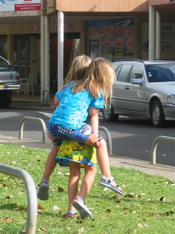 Cassie and Juliana giving each other piggy back rides while