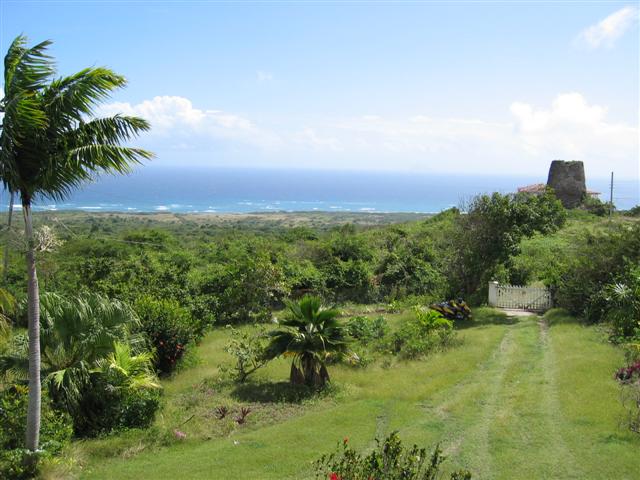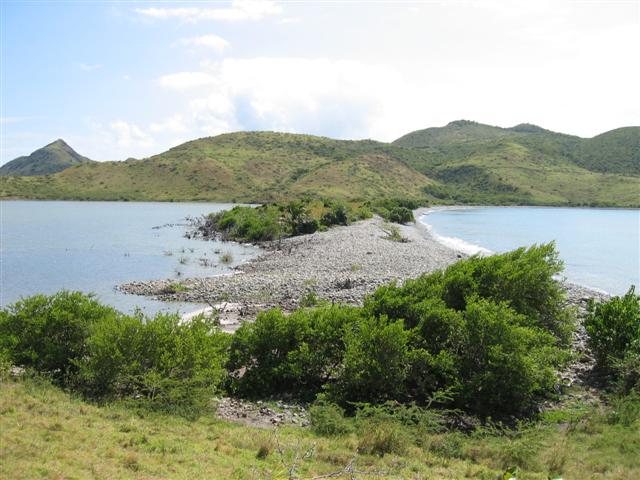 The Salt Pond on the left and the Caribbean Sea on the right