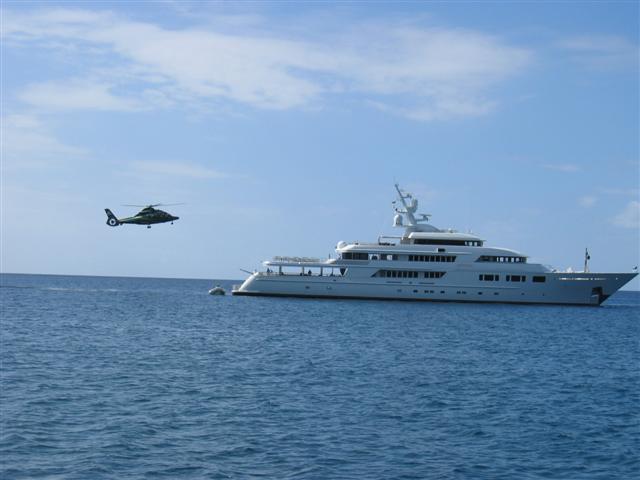 The owners arrive onboard the neighboring yacht in Nevis, the