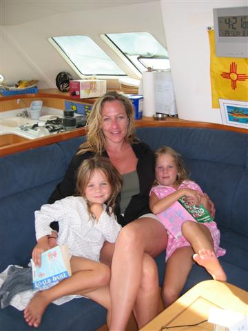 Aunt Kim and her nieces enjoying a snuggle on the couch.