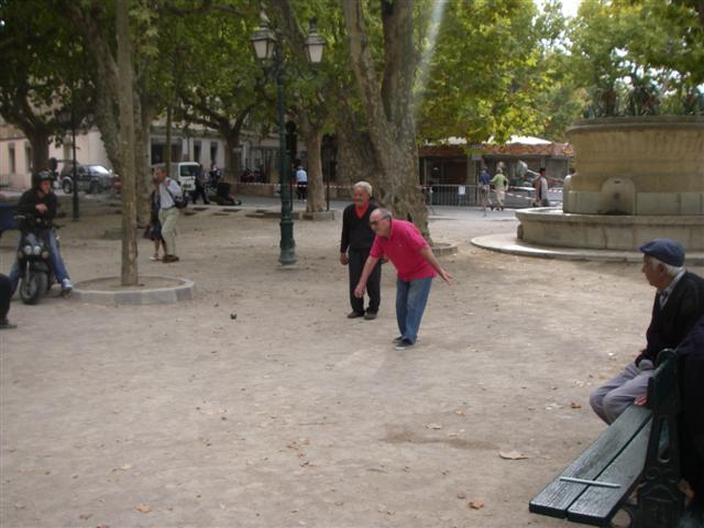 too, play boules in the Place.