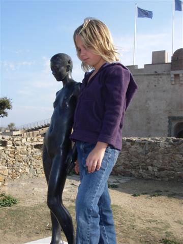 imitate the pose of his favorite statue.....