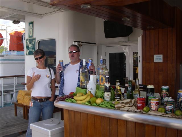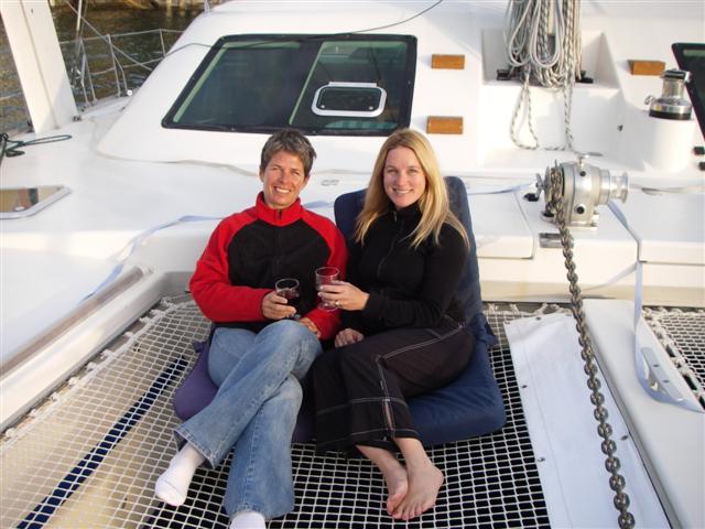 In Mike and Jule's cabin onboard the WindSurf.