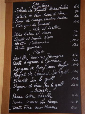 The menu at our favorite restaurant, Le Bistrot d'Antoine.