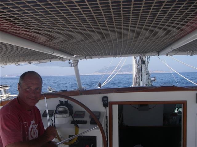 Joe at the helm with The Rock in the background.