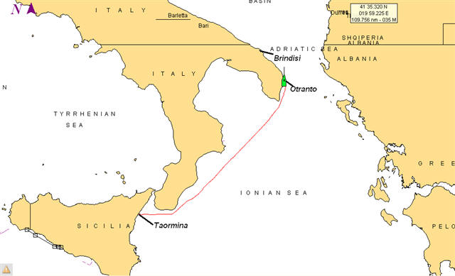 took off across the Ionian Sea, hoping to make it into the Adriatic as far as
