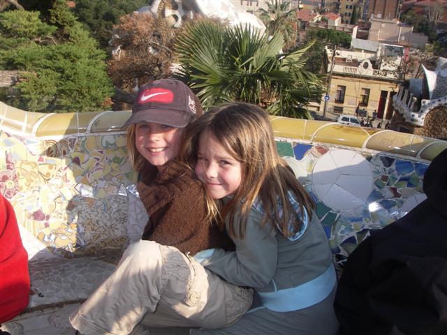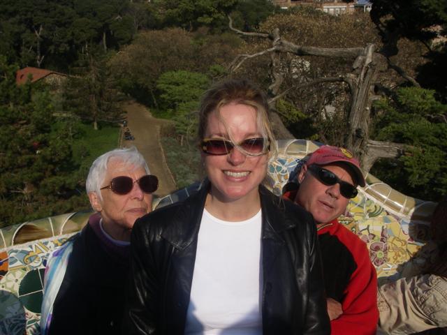 Sitting on one of Gaudi's benches in Parc Guell.