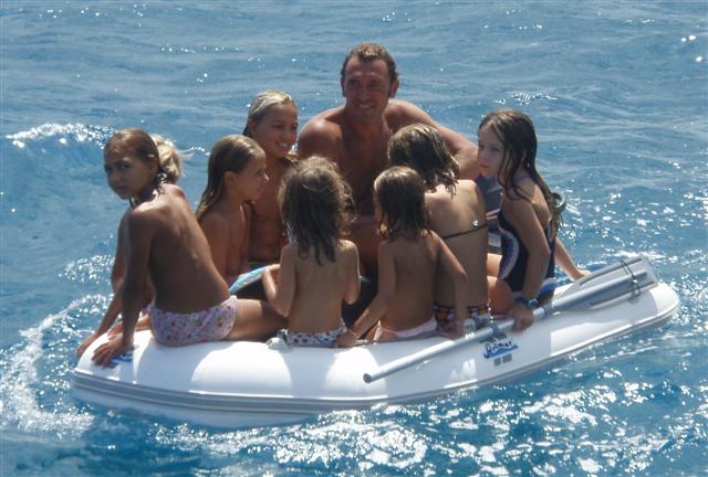 and riding back in the dinghy.