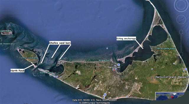 afternoon kite session in Cape Poge Pond, a large lake-like