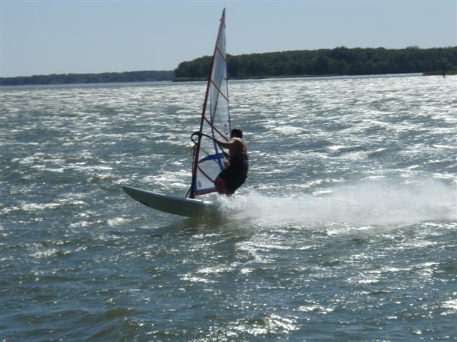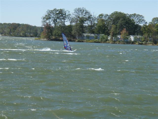 Bruce Cunard windsurfing on the Rhode River during a strong