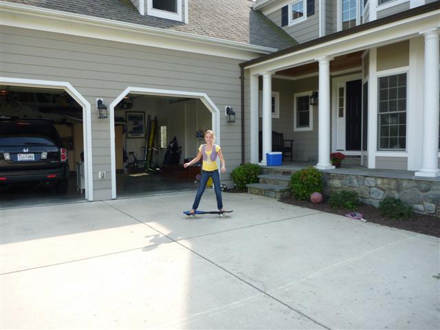Cassie mastering the "Ripstick" in the Cunards' driveway